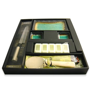 The Perfect gift set for any sushi lover! This set includes 1 rectangular sushi dish, 2 sauce dishes, a sushi rice mold, rice spatula, sushi rolling mat, a sashimi knife, and 2 pairs of chopsticks.